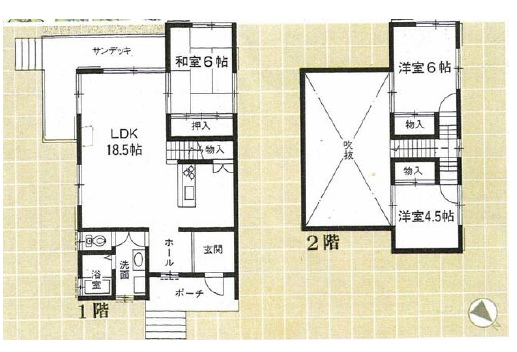 南向きで3面採光、吹き抜けとウッドデッキがある別荘