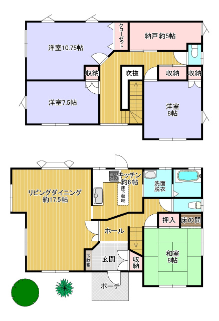 | 道の駅、郵便局、診療所が徒歩圏内。お庭も広々で、家庭菜園も
