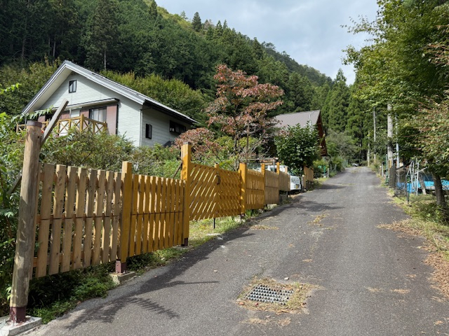 | 美山の赤橋を右に4kmほど。府道京都広河原美山線・府道38号線、民宿「香妃」さんの隣の物件です。現在プレハブ倉庫が建っています。 |