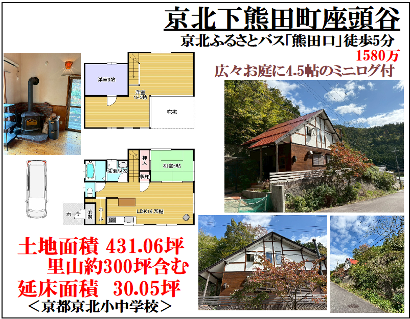 京都市内から車で30分の右京区京北地域・・・のんびり田舎暮らし、悠々自適のセカンドライフを始めませんか?京北・美山&双ヶ丘学区(宇多野・鳴滝・御室・谷口・龍安寺・花園)の不動産売買、賃貸情報満載!お目当ての戸建・土地、売買・賃貸物件、事業用物件を簡単検索!